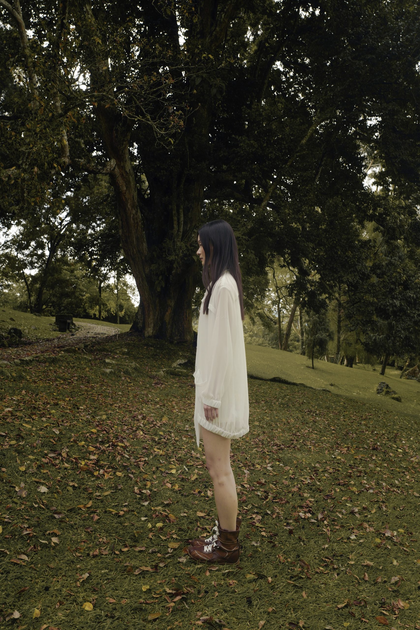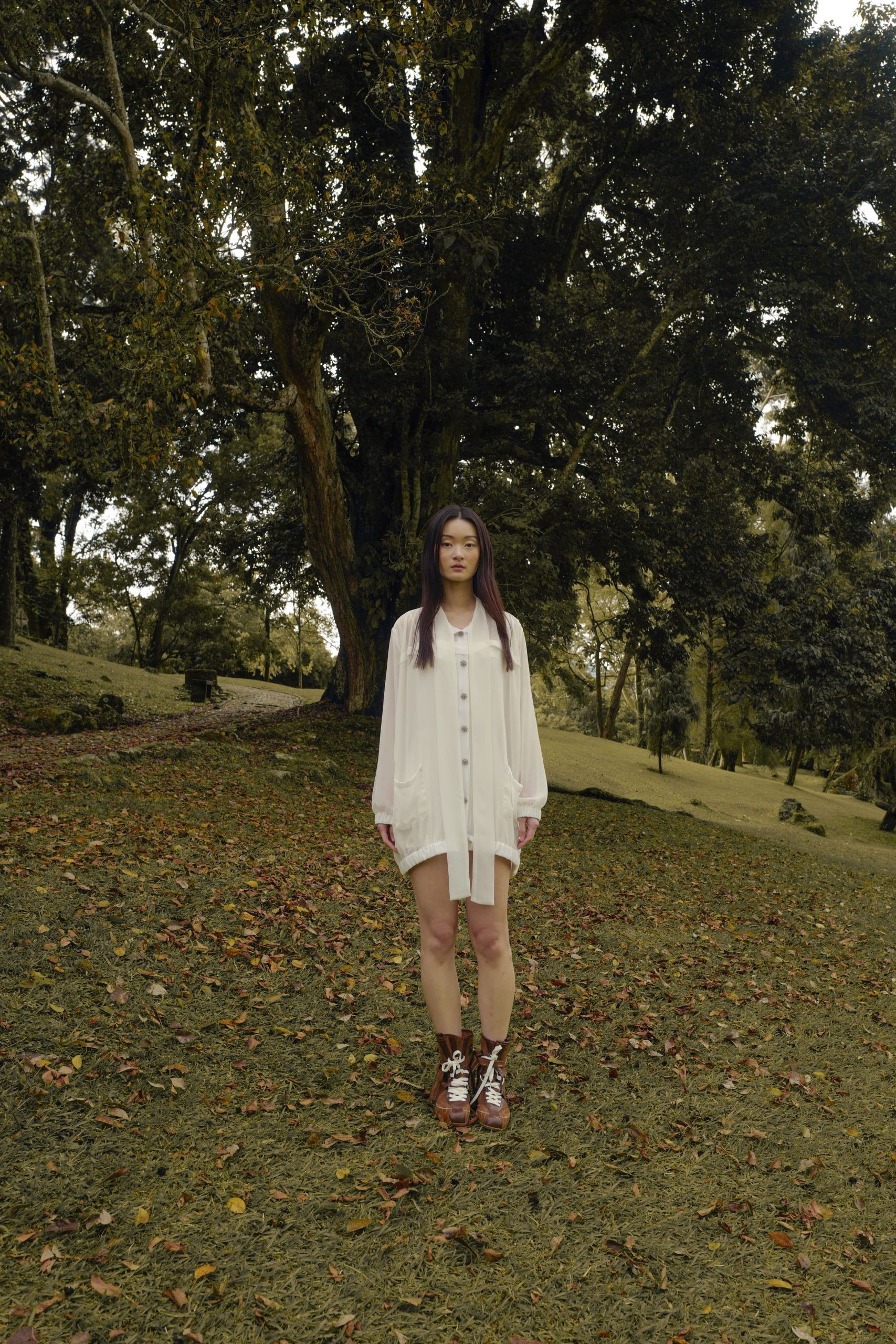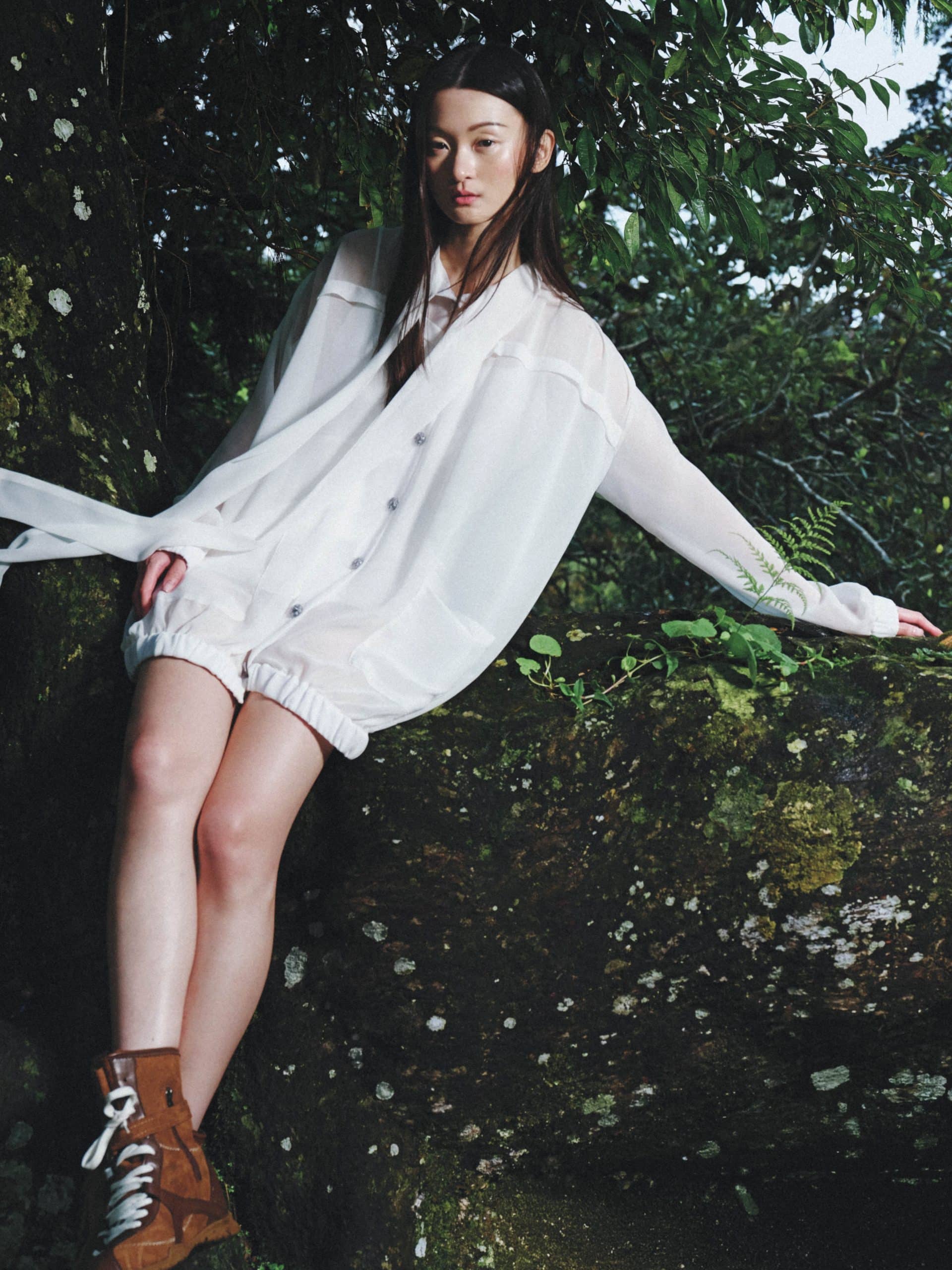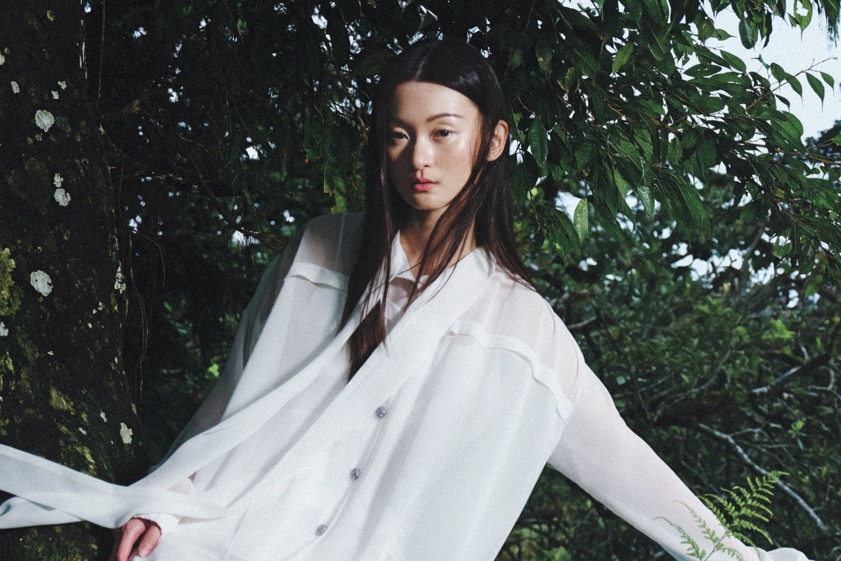 Amilie is a sheer chiffon blouse with a loose, elongated silhouette made from sheer chiffon with a slip lining. The top features an elegant ribbon collar and dramatic long, puffed sleeves. The oversized fit and contrasting metal buttons lend a sophisticated, romantic finish.