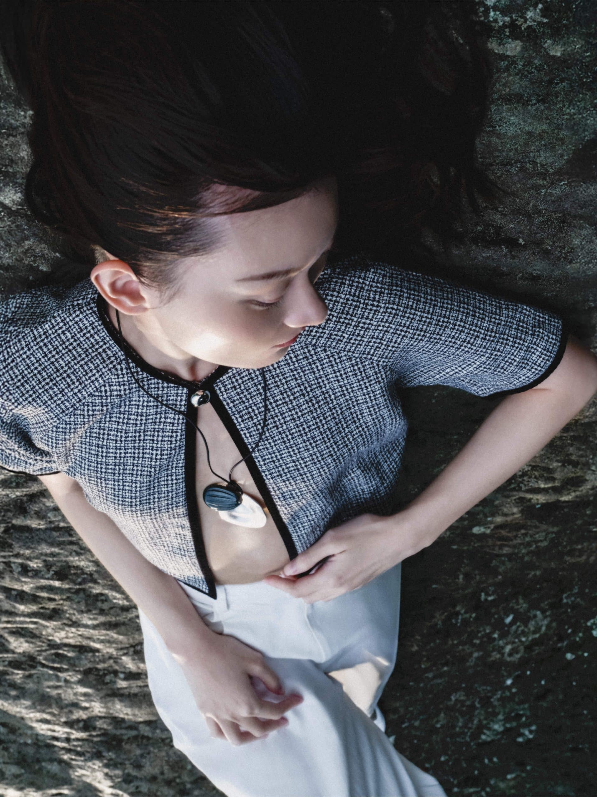 Leila Bolero Top is crafted from a soft and lightweight tweed, detailed with velvet edges throughout. The cape features a flattering cropped fit and short sleeves. Its open front is secured by a single buttoned hook closure. It is a versatile piece that offers warmth and shape in one thoughtful layer.